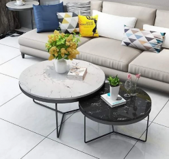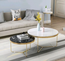 Bàn Trà Đôi mặt đá cao cấp chân chữ Y sắt tròn